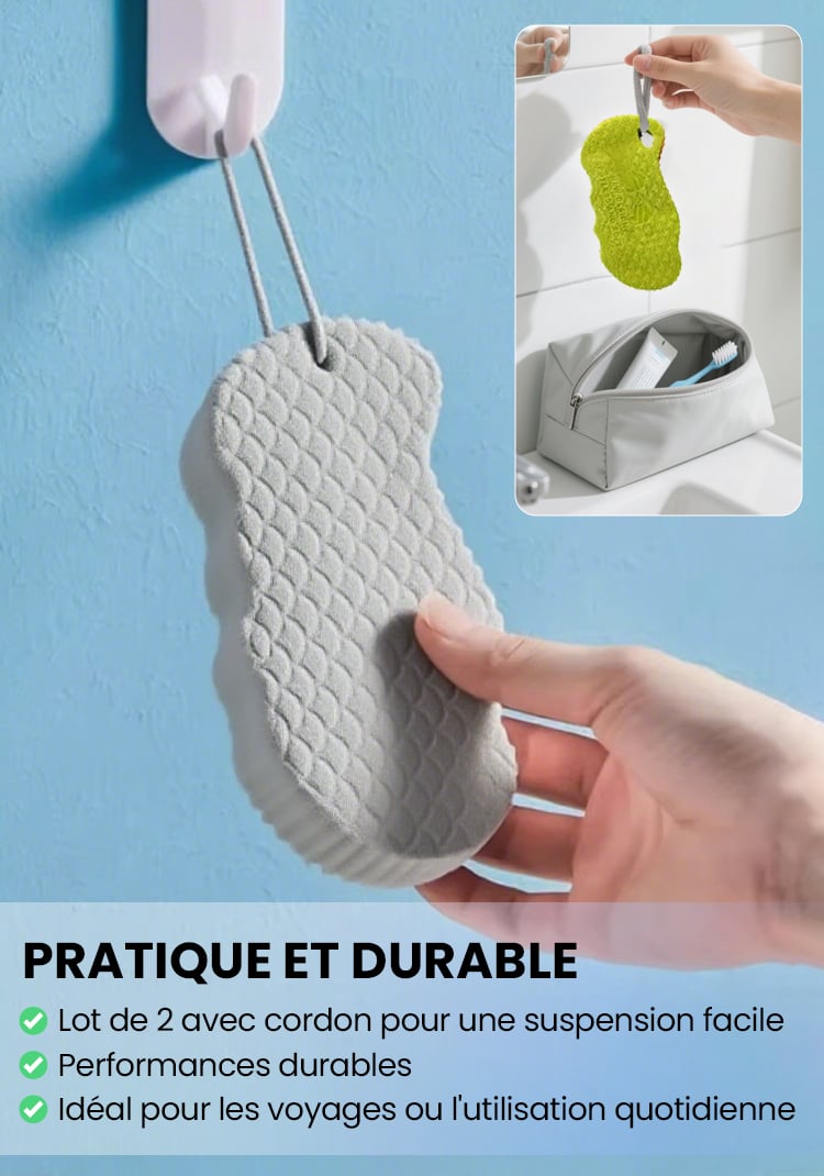 Le meilleur gommage pour ma peau. Doux mais efficace contre les peaux mortes. Je me suis senti vraiment propre après ma douche. Mon corps sent à nouveau bon. J'ai acheté 5 éponges et j'adore leurs couleurs.