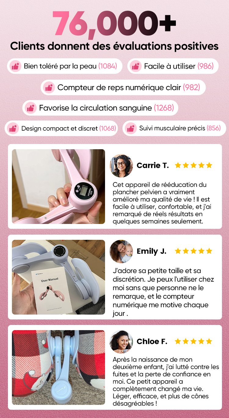 « Je ne sentais rien avant de faire les Kegels. Ce produit m'a permis de sentir les muscles immédiatement - cela a changé la donne.