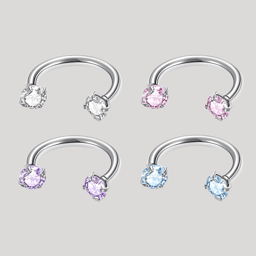 Accueil > Bijoux > Piercings corporels > Bague en fer à cheval en zirconia