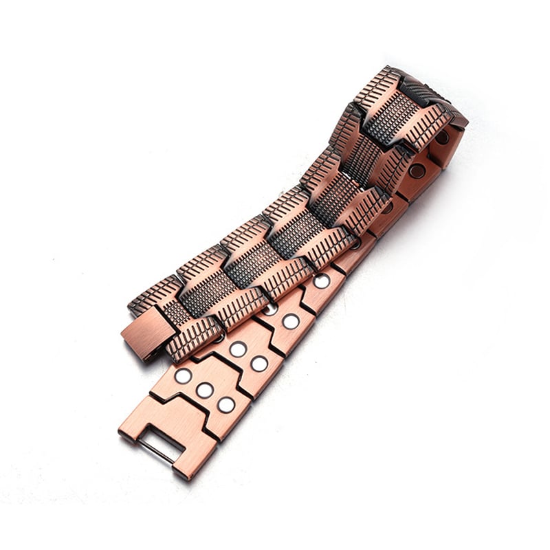 Le bracelet combine les propriétés naturelles du cuivre pur avec des aimants en néodyme triple rangée puissants, conçus pour soutenir la circulation, favoriser la relaxation et compléter un mode de vie actif et sain – le tout en ajoutant une touche élégante à votre look.