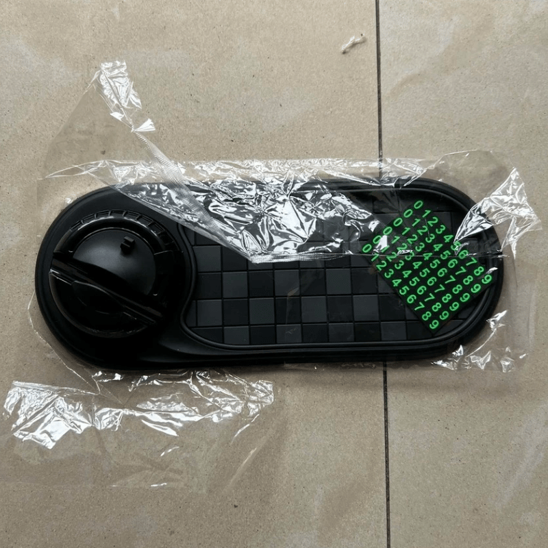 Ce tapis est tellement pratique ! Il maintient mon téléphone en place, range mes lunettes de soleil et comporte même une plaque de stationnement. Parfait pour une voiture bien rangée.