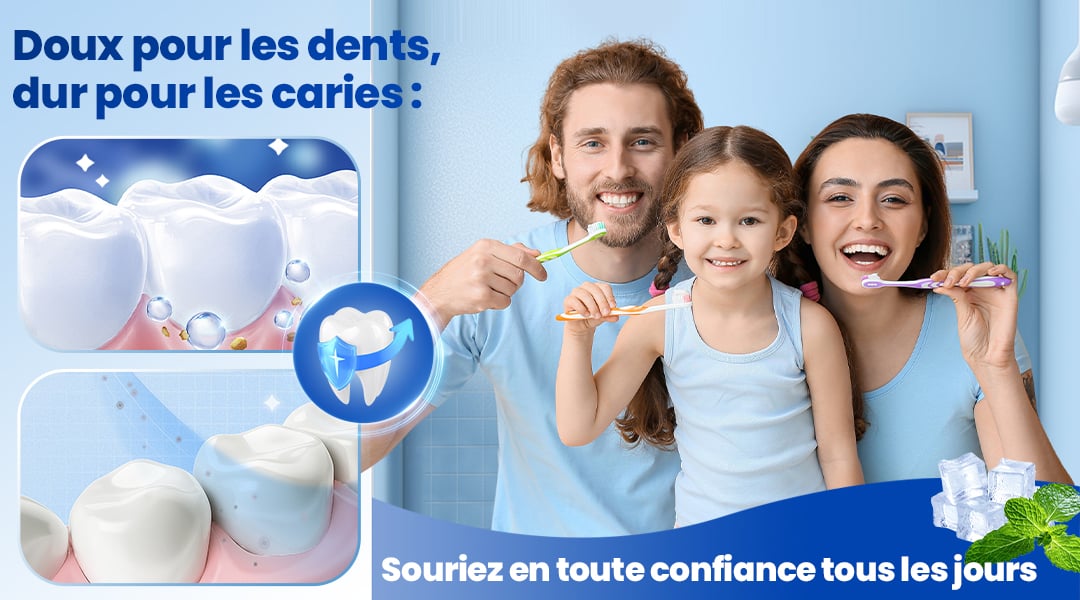 J'ai l'impression que ce produit va ajouter des années de bonne santé à mes dents, comme si je n'avais plus de caries. Il rend les dents dures et glissantes, comme super propres. Je ne peux pas le décrire. Il suffit de le constater par soi-même.