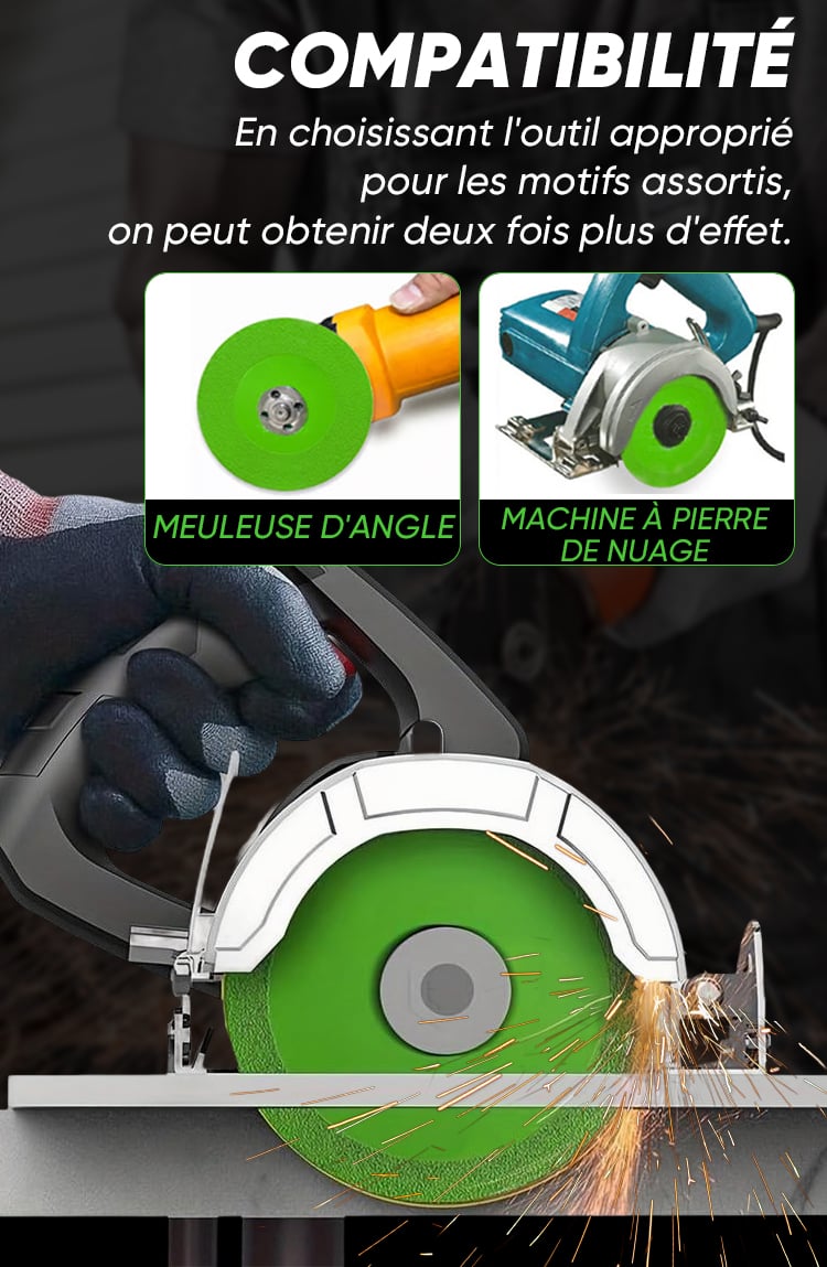 Les matériaux des dalles rocheuses ont une dureté élevée, de sorte que la dureté et la résistance à l'usure des pièces de coupe doivent également être très élevées. En général, le diamant et d'autres abrasifs durs sont utilisés pour fabriquer les lames de coupe, qui peuvent s'adapter efficacement aux matériaux de haute dureté des dalles rocheuses.