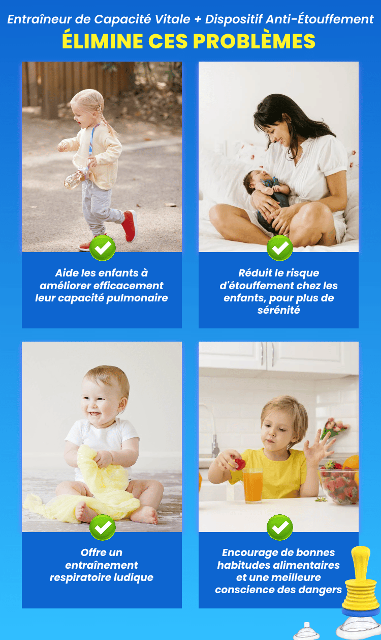 Depuis que j'utilise l'Entraîneur de Capacité Vitale, la capacité respiratoire de mon enfant s'est améliorée de façon spectaculaire. Non seulement cet appareil est efficace, mais il est aussi très facile à utiliser. Je le recommande vivement à tous ceux qui se soucient de la santé respiratoire de leur enfant !