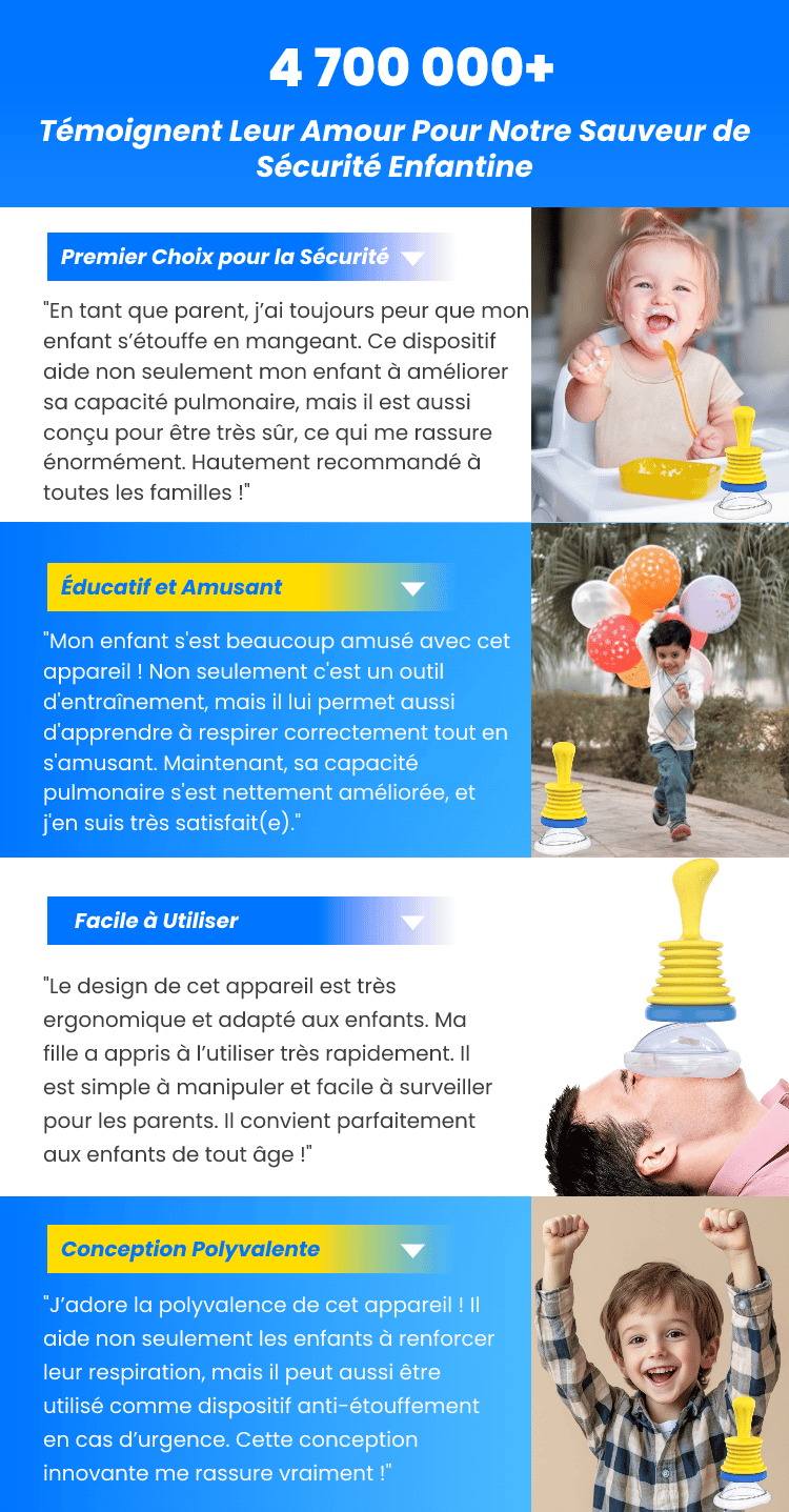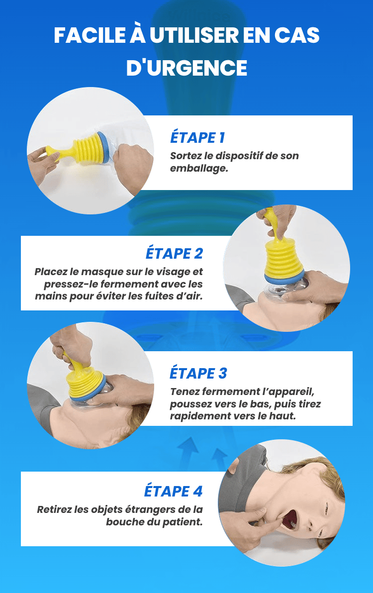 Ce dispositif anti-étouffement est d'une aide précieuse lorsque mon fils s'étouffe ! Son design ergonomique me donne plus de confiance en cas d'urgence.