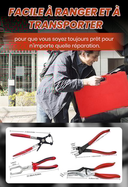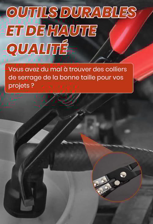 Pince à sertir professionnelle, conçue pour les colliers de serrage automobiles.