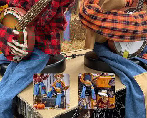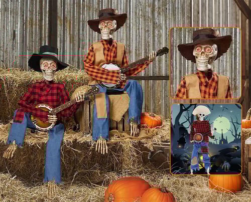 Notre squelette animatronique prend vie avec l'activation par mouvement ou son. Parfait pour les maisons hantées, les fêtes d'Halloween, les clubs et les parcs à thème—il plaisante, joue de la musique "Dueling Banjo" et bouge sa tête en synchronisation avec la mélodie !