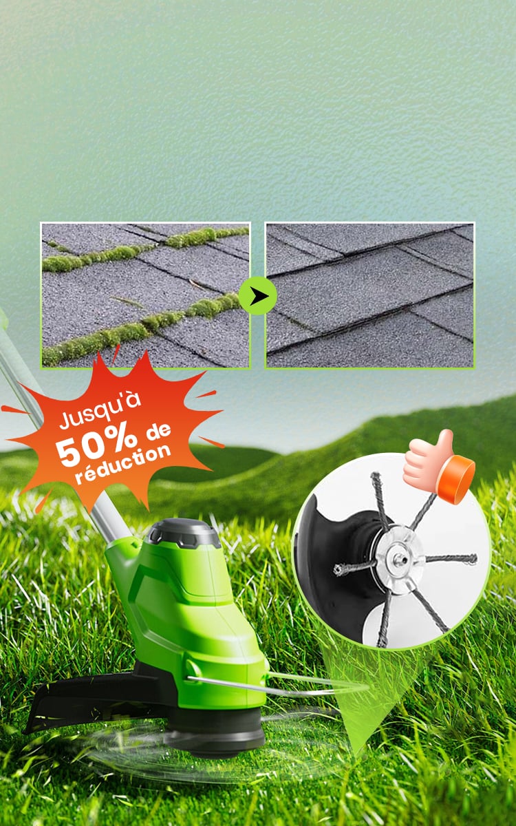 Ses poils en acier résistants coupent même les broussailles, les mauvaises herbes et la mousse les plus épaisses en quelques secondes. Finis les efforts interminables pour arracher ou couper à la main.