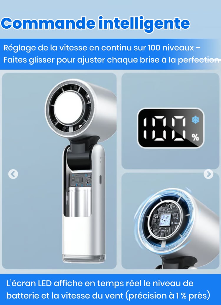 Absolument. Il offre un réglage de la vitesse en continu sur 100 niveaux, vous permettant de faire glisser pour choisir exactement la brise que vous souhaitez—fini les problèmes de vent « trop fort » ou « trop faible ».