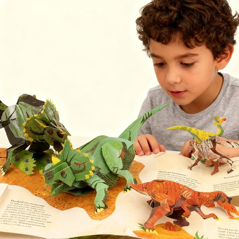 Expérience Pop-Up 3D Époustouflante : Comprend des designs pop-up 3D immersifs qui semblent sortir des pages, créant un monde préhistorique réaliste devant les yeux des enfants—éveillant leur fascination pour les dinosaures et les sciences naturelles.